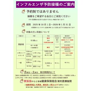 ・接種は、内科医師(松本先生、金澤先生)が行います。内科診療日にお越しください。 (内科診療日以外は接種ができません)
